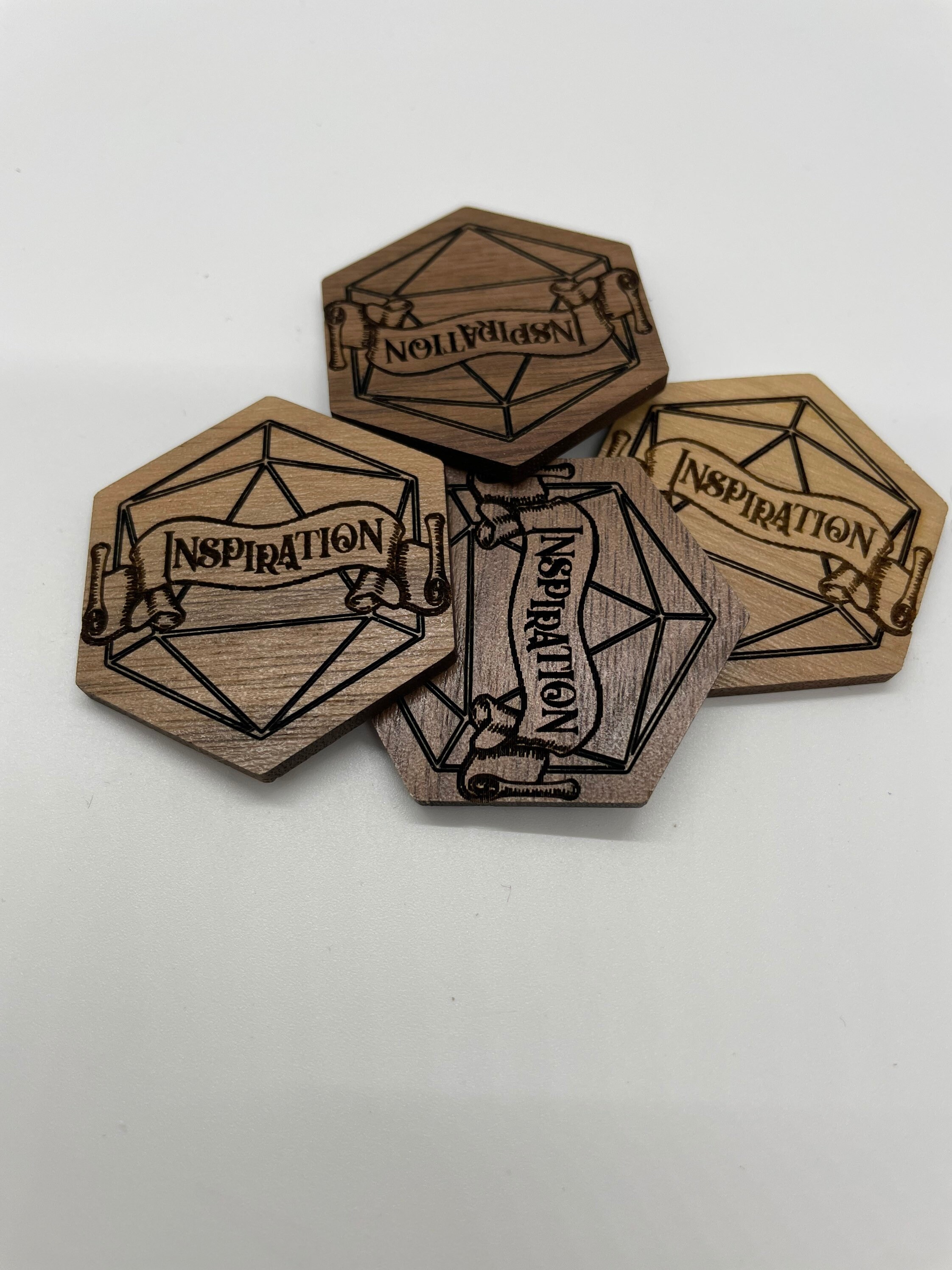 Want to give your players some inspiration? Well now you can literally throw it at them with these beautiful walnut hardwood inspiration tokens!!*